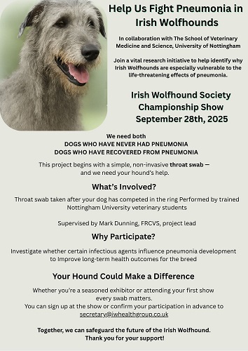 If you can help, if your hound has had pneumonia, is in the UK and is at least four weeks clear of their last antibiotics, please do get in touch